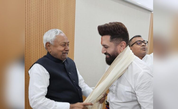 पटना। बिहार विधानसभा चुनाव में एनडीए को मिली भारी जीत के बाद शनिवार को केंद्रीय मंत्री और लोक जनशक्ति पार्टी (रामविलास) के अध्यक्ष चिराग पासवान मुख्यमंत्री नीतीश कुमार से मिलने उनके आवास पहुंचे। दोनों नेताओं के बीच मुलाकात गर्मजोशी भरी रही।