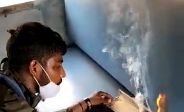 अग्निपथ: प्रदर्शनकारी ने आराम से ट्रेन में बैठकर लगाईं कोच में आग, दोस्त से बनवाया वीडियो