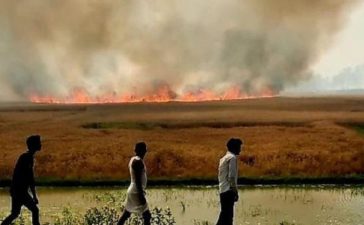 मैनपुरी जिले के औंछा थाना क्षेत्र के गांव नगला अमर सिंह के पास शुक्रवार दोपहर को खेतों में खड़ी गेहूं...
