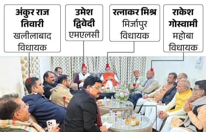 बैठक में सीएम योगी के पूर्व मीडिया सलाहकार एवं देवरिया विधायक डॉक्टर शलभ मणि त्रिपाठी, पीएम नरेंद्र मोदी के प्रधान सचिव रहे नृपेंद्र मिश्रा के बेटे और एमएलसी साकेत मिश्रा, नौतनवां विधायक ऋषि त्रिपाठी, तरबगंज से विधायक प्रेमनारायण पांडेय, मिर्जापुर से विधायक रत्नाकर मिश्रा, बांदा विधायक प्रकाश द्विवेदी, बदलापुर से भाजपा विधायक रमेश मिश्रा, खलीलाबाद से विधायक अंकुर राज तिवारी और मेहनौन से भाजपा विनय द्विवेदी सहित अन्य विधायक बैठक में शामिल हुए।