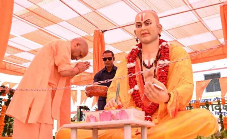चित्रकूट। गोस्वामी तुलसीदास जी की 528वीं जयंती पर उत्तर प्रदेश के मुख्यमंत्री योगी आदित्यनाथ गुरुवार को उनकी जन्मस्थली राजापुर पहुंचे। उन्होंने तुलसी जन्मकुटीर में गोस्वामी तुलसीदास जी की विधिवत पूजा-अर्चना कर दर्शन किए और मानस मंदिर में रखी गई हस्तलिखित श्रीरामचरितमानस की प्रति का दर्शन कर आशीर्वाद लिया।