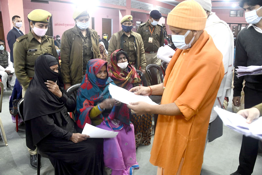 लखनऊ। उत्तर प्रदेश के मुख्यमंत्री योगी आदित्यनाथ ने आज गोरखनाथ मंदिर परिसर स्थित हिन्दू सेवाश्रम में ‘जनता दर्शन’ में आए लोगों की समस्याएं सुनीं तथा संबंधित अधिकारियों को जन-समस्याओं के त्वरित निराकरण हेतु निर्देशित किया।