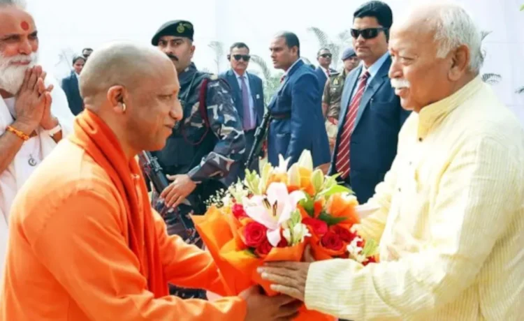 लखनऊ। उत्तर प्रदेश के मुख्यमंत्री योगी आदित्यनाथ और राष्ट्रीय स्वयंसेवक संघ के सरसंघचालक मोहन भगवत के बीच बुधवार को अहम मुलाकात हुई। यह बैठक लखनऊ के निराला नगर स्थित सरस्वती कुंज में हुई, जो राष्ट्रीय स्वयंसेवक संघ का कार्यालय है। दोनों नेताओं के बीच करीब 35 मिनट तक चर्चा चली।