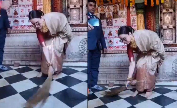 अयोध्या। बॉलीवुड एक्ट्रेस कंगना रनौत रामलला की प्राण प्रतिष्ठा में शामिल होने के लिए अयोध्या पहुंच गई हैं। कंगना आज अयोध्या के मंदिरों के दर्शन कर रही हैं। हाल ही में कंगना का एक वीडियो सामने आया है, जिसमें वे हनुमान गढ़ी मंदिर में झाड़ू लगाती दिखाई दे रही हैं।