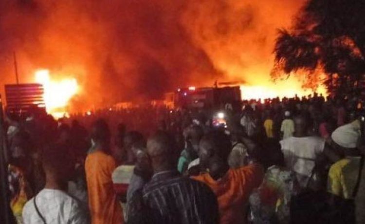घटना उस वक्त हुई जब करीब 40 फीट लंबा तेल टैंकर एक बस से टकरा गया। इसके बाद हुए टैंकर से तेल का रिसाव होने लगा और कुछ ही देर में आग के साथ हुए भीषण विस्फोट ने पूरे इलाके में तबाही मचा दी।