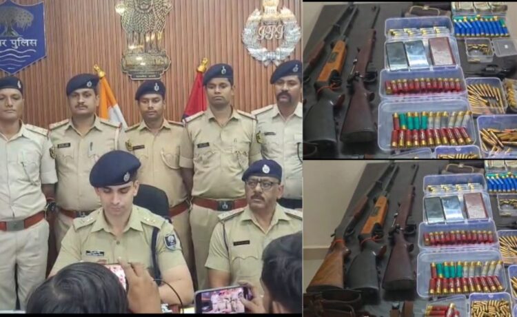 पटना। बिहार के पटना जिले के बिहटा और मनेर में पुलिस ने छापेमारी कर महाकाल गैंग के दो हथियार और कारतूस तस्करों को दबोच लिया। गिरफ्तार आरोपियों के नाम हरेराम सिंह और विनीत कुमार हैं, जो पटना के बिहटा थाना क्षेत्र के घोड़ाटाप गांव के रहने वाले हैं।भारी मात्रा में हथियार-कारतूस बरामद पुलिस ने इनके ठिकाने से 2 राइफलराइफल जैसी 1 बंदूक 1 रिवॉल्वर 340 कारतूस ₹5.74 लाख नकद 3 मोबाइल 3 बट कवर बरामद किए।