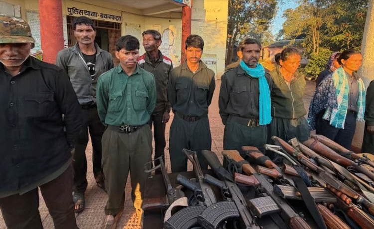 आत्मसमर्पण करने वाले नक्सली और उनके हथियार