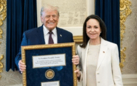वेनेजुएला की विपक्षी नेता मचाडो ने ट्रंप को सौंपा नोबेल शांति पुरस्कार पदक, व्हाइट हाउस में हुई मुलाकातJanuary 16, 2026