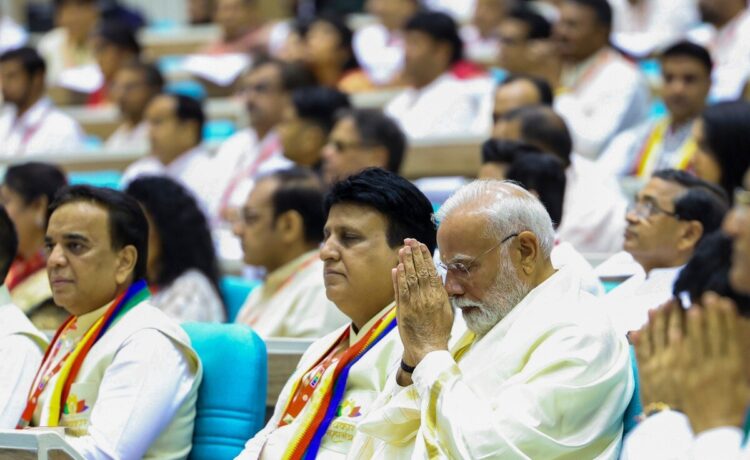 प्रधानमंत्री नरेन्द्र मोदी ने आज नवकार महामंत्र दिवस में हिस्सा लिया। उन्होंने दिल्ली के विज्ञान भवन में “नवकार महामंत्र” का जाप किया। महावीर जयंती पर जैन धर्म के 24वें तीर्थंकर भगवान महावीर के जन्म का जश्न मनाया जाता है। पवित्र जैन मंत्र के जरिए शांति, आध्यात्मिक जागृति और सद्भाव को बढ़ावा देने के लिए 108 देशों के लोग भी इस कार्यक्रम में शामिल हुए। नवकार महामंत्र कार्यक्रम में श्रद्धा प्रकट करने के लिए पीएम मोदी बिना जूते पहने आए। वे मंच पर नहीं बैठे, बल्कि सभी लोगों के साथ बैठे।