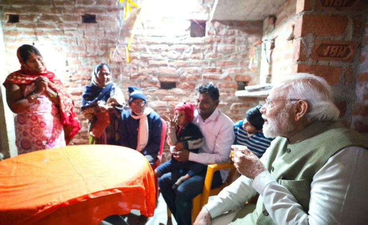 अयोध्या में पीएम उज्ज्वला योजना की लाभार्थी मीरा के घर अचानक चाय पीने पहुंचे पीएम मोदी