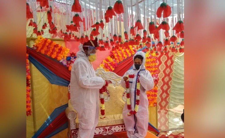 शादी का समारोह सोमवार को दोपहर 12 बजे शुरू हुआ। प्रशासन और स्वास्थ्य विभाग की टीम की निगरानी में शादी की सभी रस्में पूरी हुईं। प्रशासन ने दोनों पक्षों के लिए पीपीई किट मुहैया कराई। वर-वधू ने पीपीई किट पहनकर फेरे लिए।