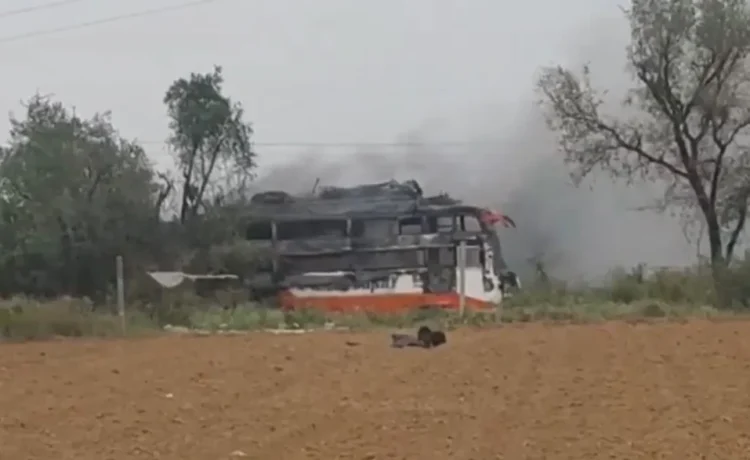 जयपुर। राजस्थान के जयपुर ग्रामीण क्षेत्र के मनोहरपुर में मंगलवार सुबह एक दिल दहला देने वाला सड़क हादसा हो गया। मजदूरों से भरी एक यात्री बस हाईटेंशन बिजली के तार की चपेट में आ गई, जिससे बस में अचानक करंट दौड़ गया और आग लग गई। हादसे में दो मजदूरों की मौत हो गई, जबकि पांच की हालत गंभीर बताई जा रही है।