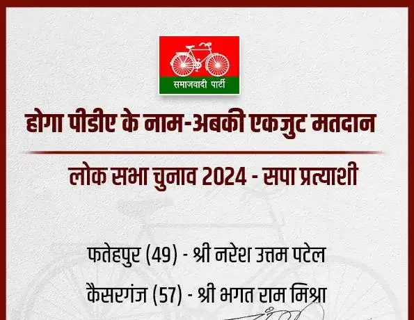 सपा ने उम्मीदवारों की एक और लिस्ट की जारी, नरेश उत्तम पटेल को फतेहपुर तो भगत राम मिश्रा को कैसरगंज से टिकट