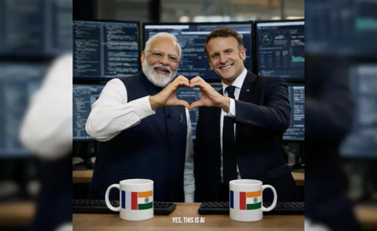 नई दिल्ली। फ्रांस के राष्ट्रपति Emmanuel Macron ने भारत और फ्रांस के मजबूत रिश्तों को खास अंदाज में प्रदर्शित करते हुए बुधवार को सोशल मीडिया प्लेटफॉर्म X पर प्रधानमंत्री Narendra Modi के साथ अपनी एक AI-जनरेटेड तस्वीर साझा की। यह तस्वीर ‘AI इंपैक्ट समिट 2026’ से पहले शेयर की गई, जिसमें दोनों नेता हाथों से दिल का प्रतीक बनाते नजर आ रहे हैं। तस्वीर पर ‘Yes, this is AI’ लिखा था। मैक्रों ने पोस्ट में लिखा, “जब दोस्त जुड़ते हैं, तो इनोवेशन होता है। AI इंपैक्ट समिट के लिए तैयार!” इस रचनात्मक पोस्ट के सामने आते ही सोशल मीडिया पर चर्चा तेज हो गई और यूजर्स ने इसे भारत-फ्रांस की गहरी दोस्ती का प्रतीक बताया।