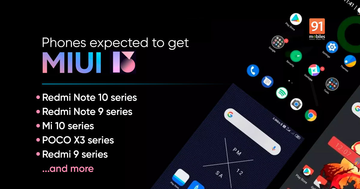 अपडेट पाने वाले फोन की लिस्ट MIUI 13 के सोर्स कोड से मिली है जिसके मुताबिक MIUI 13 का अपडेट Mi Mix 4, Mi 11, Mi 11 Pro, Mi 11 Ultra, Mi 11 Lite, Mi 10S, Redmi K40, K40 Pro और K40 Pro+ के लिए जल्द ही जारी होगा। अन्य डिवाइस को अगले साल MIUI 13 का अपडेट मिलेगा, हालांकि सभी अपडेट एंड्रॉयड 12 पर आधारित नहीं होंगे। MIUI 13 का अपडेट Xiaomi, Redmi और Poco मोबाइल के लिए जारी होगा।